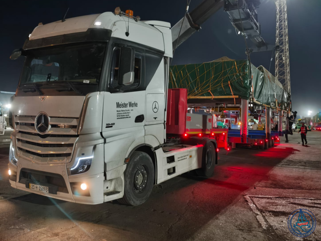 The total weight of the two shipments was 778 tons, with a total volume of 5,465 cubic meters. This presented a complex logistical challenge in terms of transportation, handling, and clearance, requiring the use of 48 trucks of various types to suit the nature, size, and weight of the equipment.